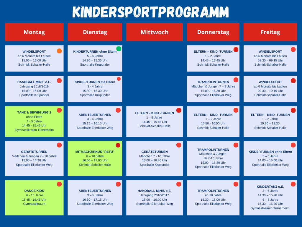 Hier findet ihr eine aktuelle Übersicht aller Sportangebote für Kinder beim RTV.